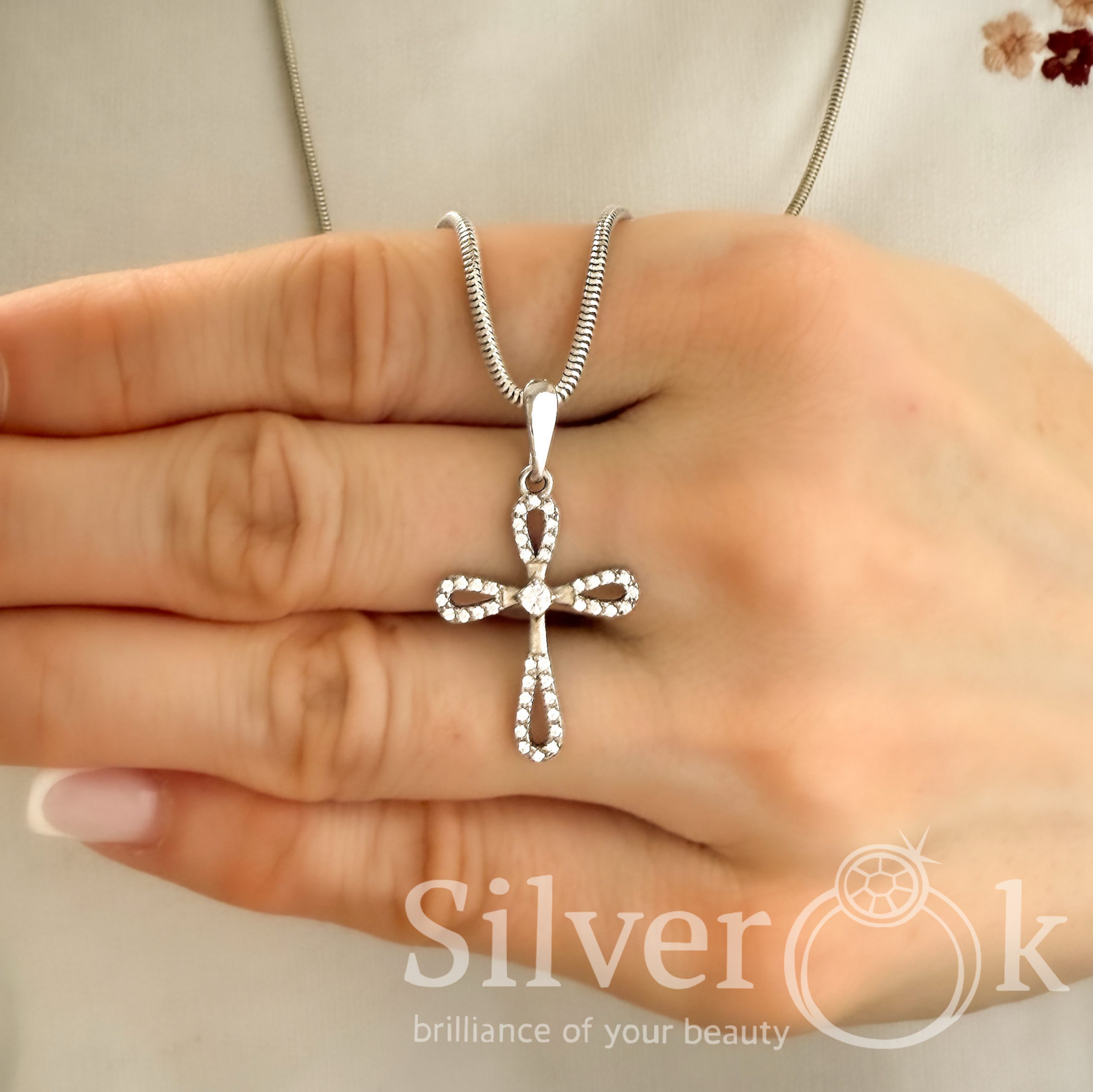 Хрестик з фіанітами А-84628 (Родований)