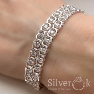 Браслет Подвійний Бісмарк з фіанітами 7003ДВ